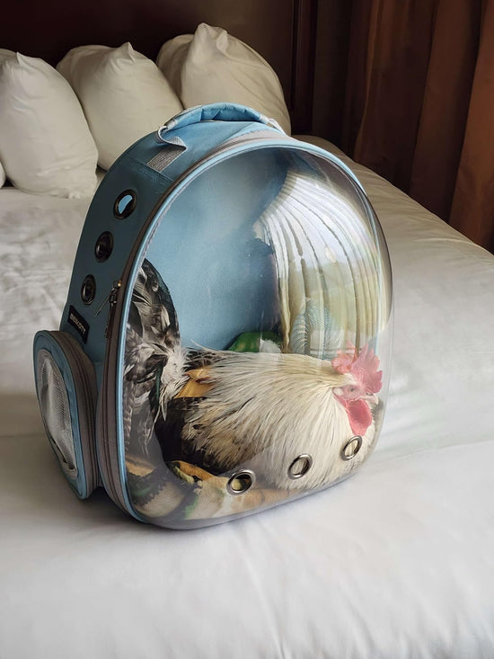 Bought this for my pet chicken since I was going on a trip to Pittsburgh, PA, and couldn't leave him at home. He stayed super calm the whole time and he really seemed to enjoy the bag! (I had also placed a small fleece blanket in the bottom for comfort.) The bag has plenty of ventilation holes and worked well for keeping him cool, as well as providing fresh air. However, after a little while (around 2 hours) the bag does build up heat regardless, so I highly recommend you buy a small rechargeable fan with this bag if you plan for long outings. The bag itself is pretty sturdy and held all 4 pounds of this fat rooster pretty well and continues to do so. I use this bag for him all the time now and it works wonders for any outing I take him on! He gives folks a smile when I take him places and he enjoys riding in comfort while doing so. Highly recommend this product for any small animal, be it a cat, dog, or chicken!